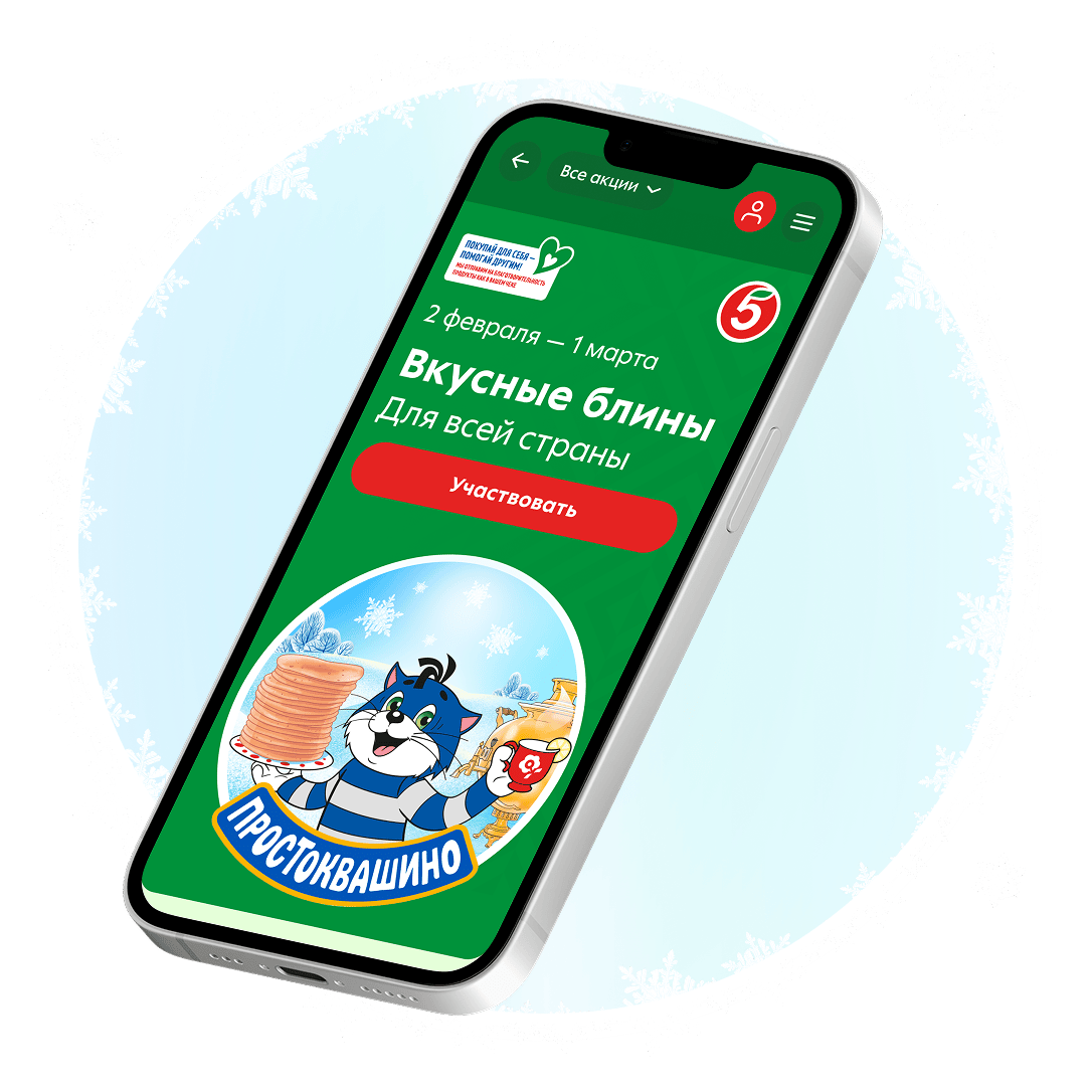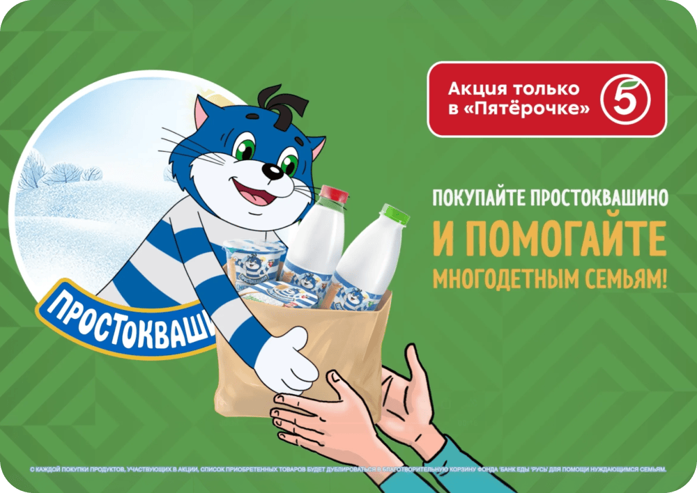 - Совершайте покупки в «Пятёрочке» или в сервисе «Пятёрочка Доставка» продукции бренда «Простоквашино» от 2 штук с применением карты «Х5 Клуба» с 02 февраля до 01 марта 2026 года и участвуйте в розыгрыше призов.